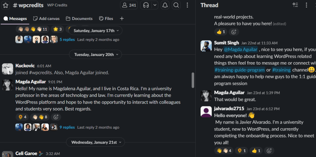 After I created my wordpress.org account and completed all the courses that were requested, my next step was to join the Slack Community, so I sign up with my wordpress profile and joined the wpcredits channel so I could start learning from the others users that have a lot more of experience than I do.
